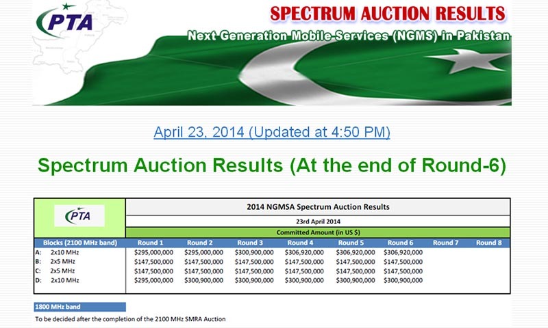 Chairman Pakistan Telecommunication Authority (PTA) Dr Syed Ismail Shah had earlier told Dawn that the first round of the license auction process had concluded with the four competing companies agreeing to the base price.