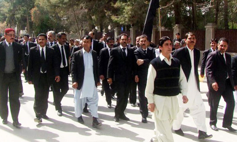 The lawyers held a protest rally from the Balochistan High Court and staged a sit-in outside the Balochistan Assembly.